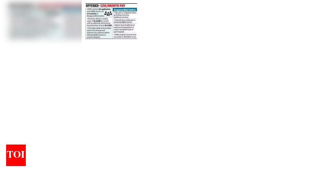 पुणे: आरोग्यवर्धिनी केंद्रांवरील केवळ 22 रिक्त पदांसाठी, पुणे महानगरपालिकेला (PMC) एमबीबीएस डॉक्टरांकडून 265 अर्ज प्राप्त झाले आहेत, ज्याने नागरी अधिकारी आणि आरोग्य तज्ञांना चकित केले आहे आणि एमबीबीएस व्यावसायिकांच्या टंचाईच्या दाव्याला आव्हान दिले आहे.आरोग्यवर्धिनी केंद्रे बाह्यरुग्ण दवाखाने म्हणून काम करतात. अधिका-यांनी सांगितले की या केंद्रांना एमबीबीएस-पात्र डॉक्टरांना आकर्षित करण्यासाठी अनेकदा आव्हानांना सामोरे जावे लागते आणि सामान्यत: BAMS प्रॅक्टिशनर्सचे कर्मचारी असतात. या पदांवर 15,000 रुपयांपर्यंत अतिरिक्त कामगिरी-आधारित प्रोत्साहनासह, दरमहा 25,000 रुपये माफक पगाराची ऑफर दिली जाते.पीएमसीच्या मुख्य सार्वजनिक आरोग्य अधिकारी डॉ. नीना बोराडे यांनी या प्रतिसादावर आश्चर्य व्यक्त केले आणि ते म्हणाले: “आम्हाला पहिल्यांदाच एमबीबीएस डॉक्टरांकडून उपलब्ध जागांपेक्षा जास्त अर्ज आले आहेत. त्यांच्यापैकी बरेच जण पदव्युत्तर प्रवेश परीक्षेची तयारी करत असतील किंवा एमबीबीएसनंतरच्या त्यांच्या बंधनांची पूर्तता करत असतील. सामान्यतः, आमच्याकडे एमबीबीएस अर्जदारांची कमतरता असते आणि आम्ही आरोग्यवर्धिनी केंद्रांचे व्यवस्थापन करण्यासाठी बीएएमएस डॉक्टरांची नियुक्ती करतो.उपलब्ध 22 पदे नागरी संचालित OPDs, आरोग्यवर्धिनी केंद्रे आणि Apla Dawakhanas यांना नियुक्त केली जातील, जे प्रामुख्याने लसीकरण, नियमित तपासणी आणि प्राथमिक उपचार यासारख्या मूलभूत आरोग्य सेवा देतात.एमबीबीएस अर्जदारांच्या वाढीला प्रतिसाद म्हणून, इंडियन मेडिकल असोसिएशन (आयएमए) ने होमिओपॅथिक संघटना आणि काही सरकारी संस्थांनी केलेल्या दाव्याच्या विरूद्ध, एमबीबीएस डॉक्टरांची कमतरता नसल्याचा पुनरुच्चार केला. IMA च्या पुणे चॅप्टरचे अध्यक्ष डॉ. सुनील इंगळे म्हणाले, “यावरून असे स्पष्टपणे दिसून येते की भरपूर MBBS डॉक्टर सक्रियपणे नोकरी शोधत आहेत आणि सरकारी सुविधांमध्ये काम करण्यास इच्छुक आहेत. MBBS पदवीधरांची संख्या दरवर्षी वाढत आहे आणि नोकरीच्या संधी स्थिर राहिल्याने, इतर नागरी क्षेत्रातील संस्था आणि सरकारी संस्थांमध्येही असाच ट्रेंड लवकरच दिसून येईल. हे BHMS डॉक्टरांना ॲलोपॅथीची प्रॅक्टिस करण्यास परवानगी देण्यामागील तर्क सिद्ध करते.”महाराष्ट्र वैद्यकीय शिक्षण आणि औषध विभागाने गेल्या महिन्यात महाराष्ट्र वैद्यकीय परिषदेला (MMC) आधुनिक फार्माकोलॉजीमध्ये एक वर्षाचा प्रमाणपत्र अभ्यासक्रम पूर्ण केलेल्या होमिओपॅथिक प्रॅक्टिशनर्सची नोंदणी करण्यास सुरुवात केल्यानंतर एमबीबीएस डॉक्टरांच्या कमतरतेचे दावे समोर आले. अभ्यासक्रम पूर्ण केल्यानंतर होमिओपॅथना MMC मध्ये नोंदणी करण्याची परवानगी देण्याच्या सरक