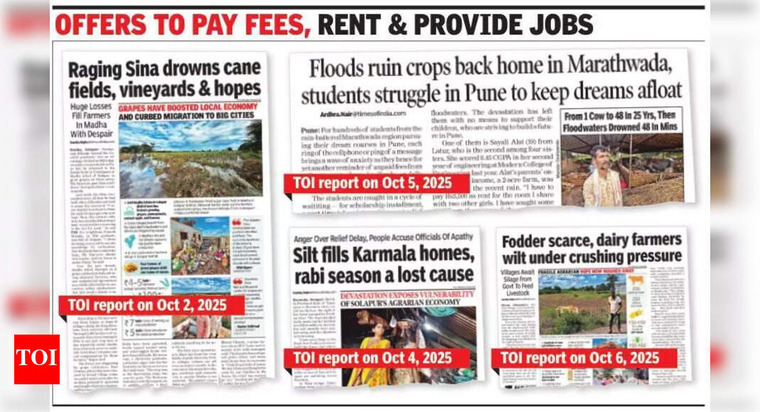 पुणे: विद्यार्थ्यांची फी भरण्यापासून ते अतिवृष्टीनंतर आलेल्या पुरात सर्वस्व गमावलेल्या शेतकऱ्यांना आधार देण्यापर्यंत अनेक पुणेकरांनी टाइम्स ऑफ इंडियामध्ये त्यांच्या बातम्या वाचून मदतीसाठी पुढे सरसावले आणि